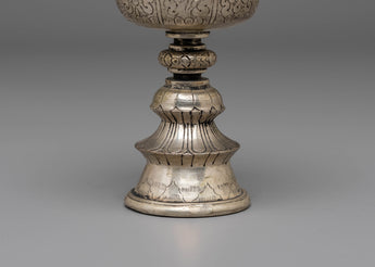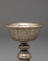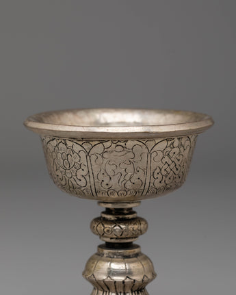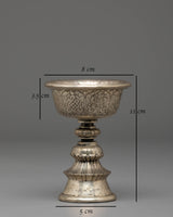 Handmade Buddhist Dharma Offering Lamp | Silver Plated Copper Ritual Light