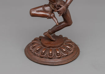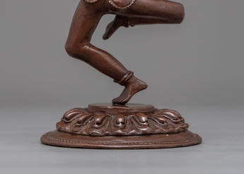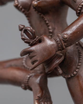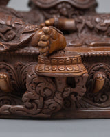 Explore the Buddhist Female Master Machig Labdron statue's superb craftsmanship. It weighs 1.05 kg and stands 8.7"/22 cm. Exquisitely carved from Oxidized copper, this work of art is a testament to unmatched talent and meticulous attention to detail. Take note of the elegant robes and well carved face features, which all convey Machig Labdron's kind and enlightened demeanor. Admire the exquisitely etched patterns that accentuate her attire, lending the sculpture depth and elegance.