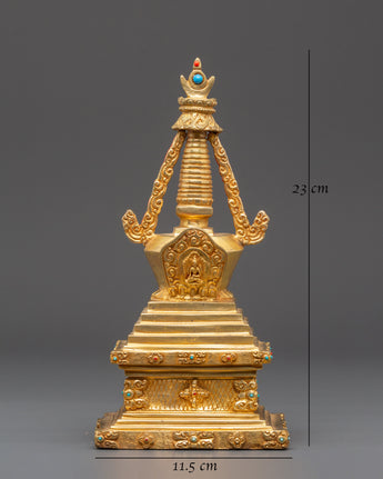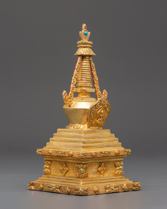 Buddhist Gold Plated in Copper Stupa | A Symbol of Sacred Heritage