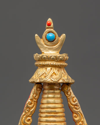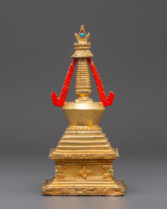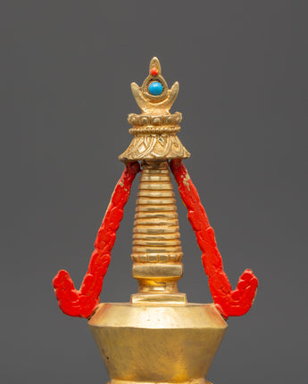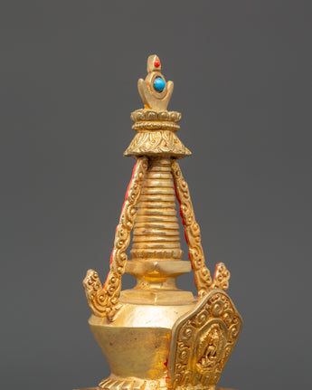 Spiritual Buddhist Gold Plated in Copper Stupa | Tibetan Buddhist Art