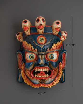 Handcrafted Buddhist Guardian Wall Hanging | Fierce Protector Deity Mask