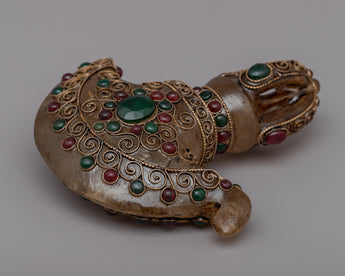 Handcrafted Buddhist ceremonial knife, intricately designed with crystal stone and adorned with gemstone inlays, weighing 0.33kg.