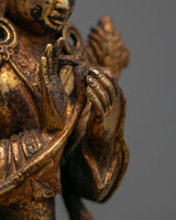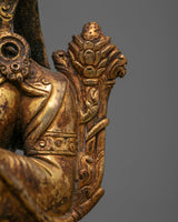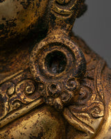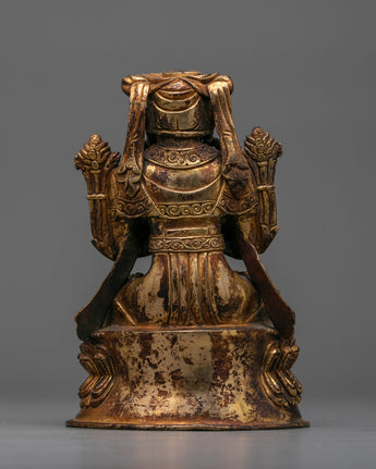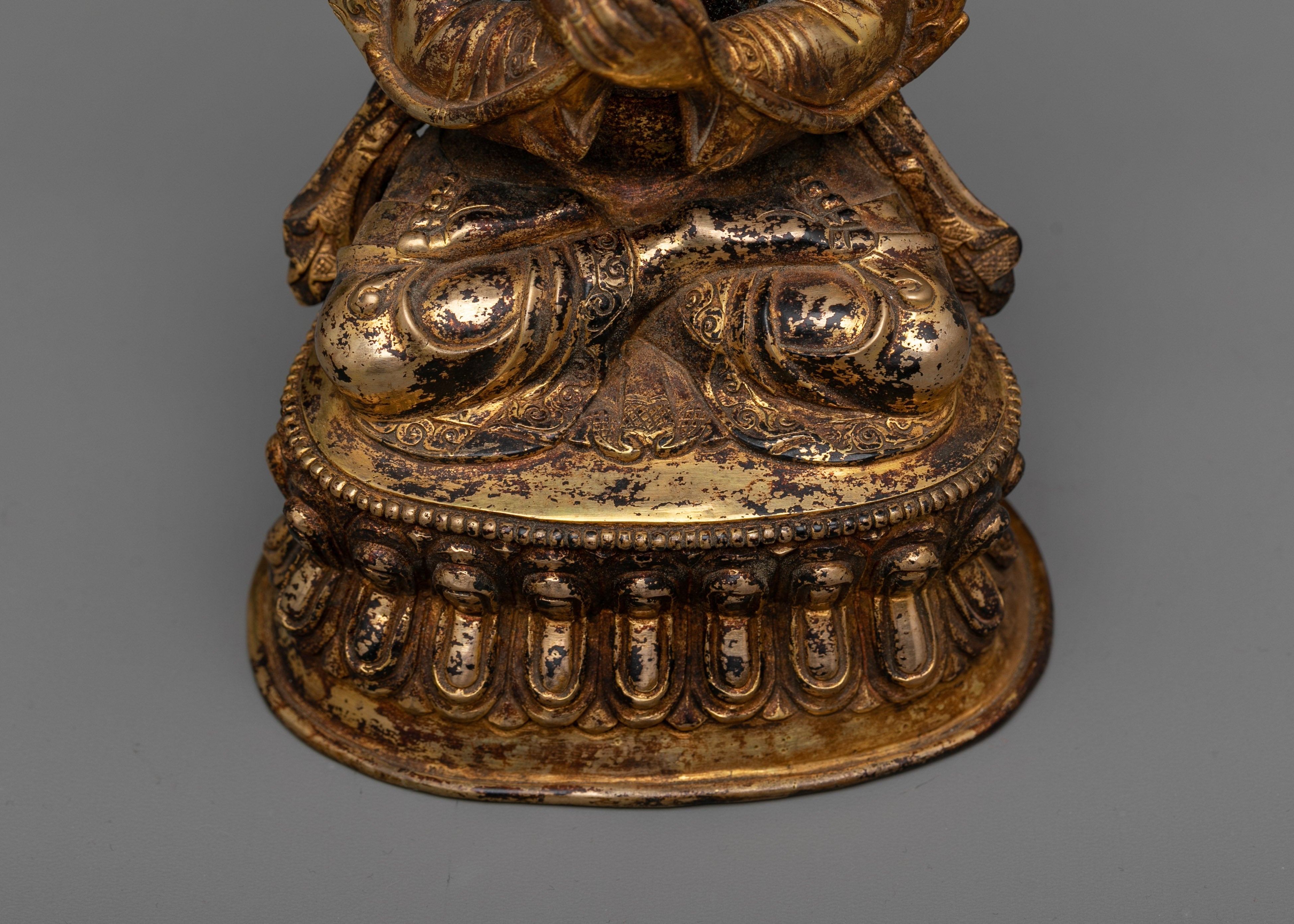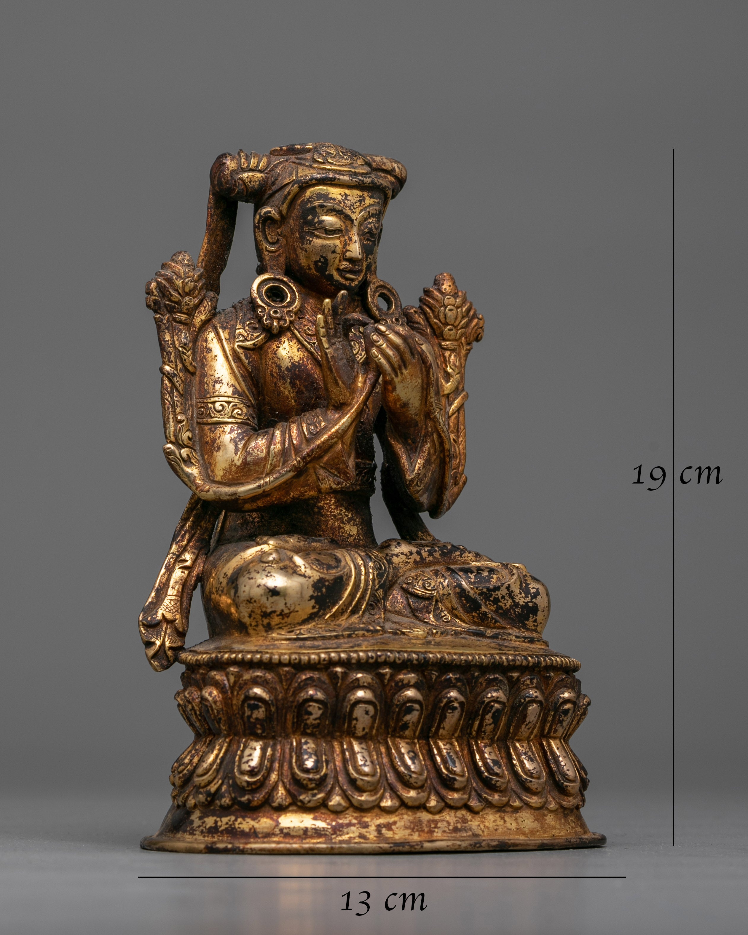 Discover the excellent artistry of the Buddhist Master Antique Figurine, which is carefully constructed of copper and gilded in real 24K gold. The essence of the teachings of the Buddhist masters is captured by this statue, which exudes a sense of reverence and spiritual insight. From the calm countenance to the elaborate robes, every element showcases the commitment of skilled craftspeople to produce a piece of enduring beauty. The figurine is a treasured addition to any religious area because of its antique finish, which conveys a feeling of history and tradition.