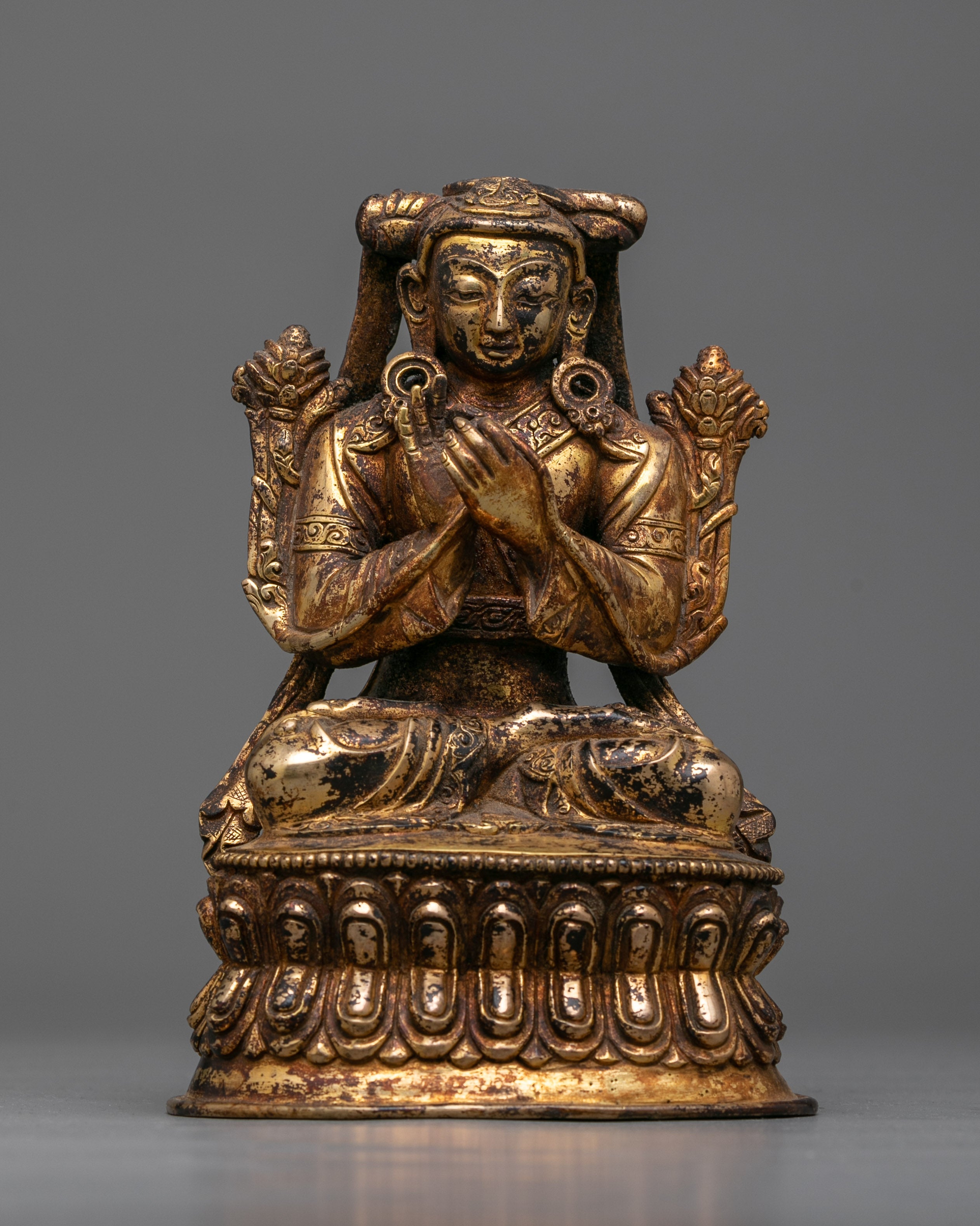 Buddhist Master was a well-known Tibetan Buddhist teacher whose teachings paved the way for the founding of the Gelug school. He is admired for his voluminous publications and translations, which continue to have an impact on Tibetan Buddhist doctrine. Buddhist Master is frequently represented with his hands in the teaching mudra, and two lotus flower stems bearing a sword and book, the Wisdom Sword and the Perfection of Wisdom Sutra. Owning a Buddhist Master statue can help followers on their path to enlightenment.