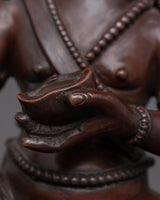 This Mahasiddha statue is ideal for meditation, devotion, or as a collector's piece since it promotes mindfulness and connection to Vajrayana Buddhist teachings. The copper finish adds spiritual accomplishment and knowledge.