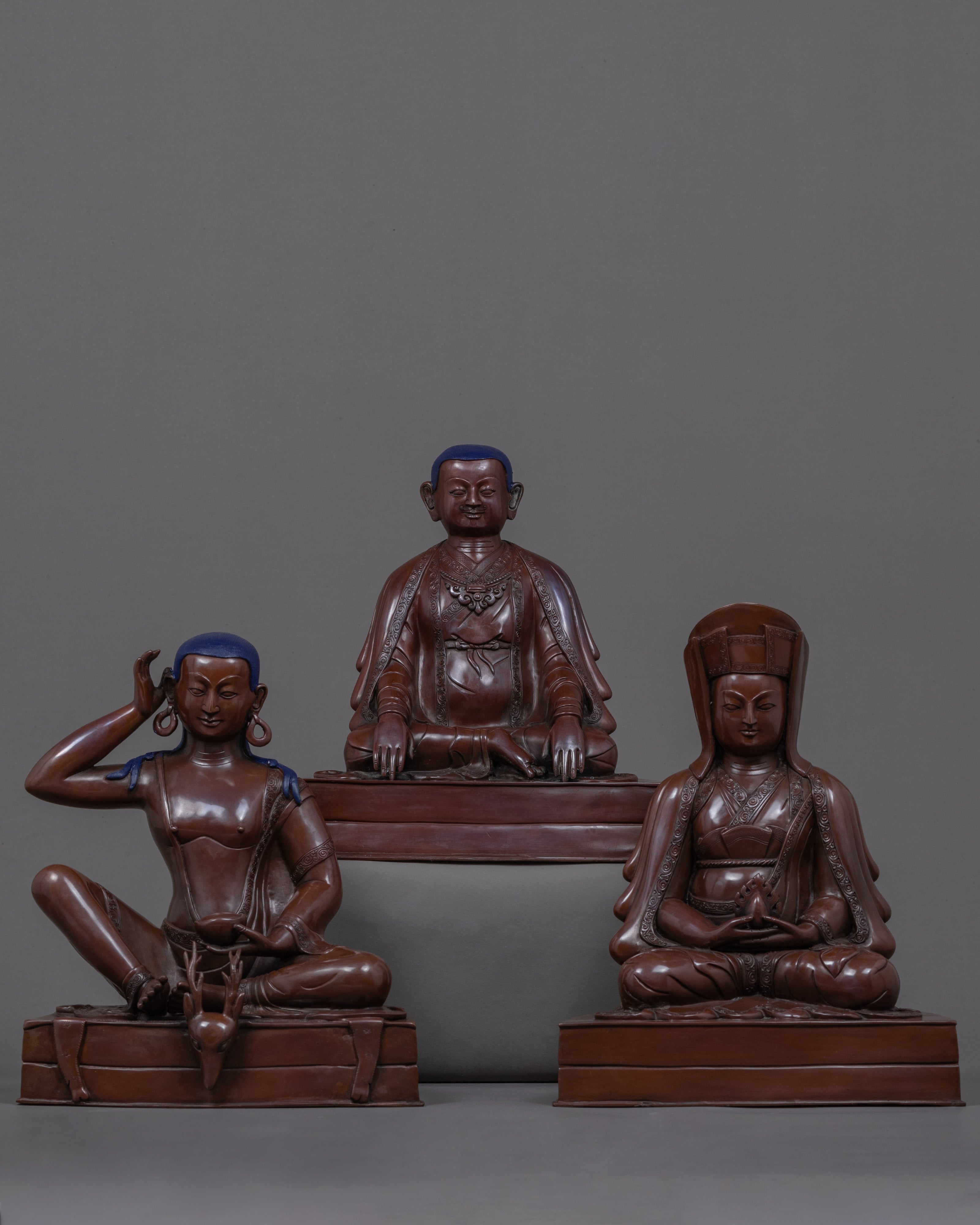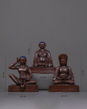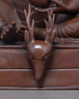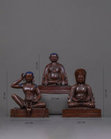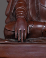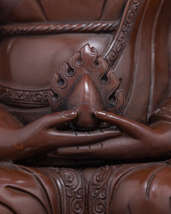We have exquisitely hand-carved the sculpture of the Buddhist Master in Traditional Himalayan Art of Nepal. In this statue, we have depicted all the deities on top of a cushioned seat. We are the Kathmandu Valley artist whose artisan has passed through generations reflecting Buddhism. We have traditionally hand-crafted the statues in an oxidized copper body. You can use this art in different Vajrayana practices and in your regular meditational activities. We assure you that the materials used in this artwork are of high quality and will last for many years. This indoor figurine will be a tremendous meditational gift from Nepal to a practitioner like you.
