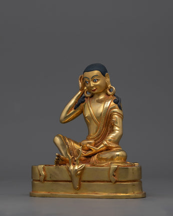 24K Gold Gilded Tibetan Jetsun Milarepa Sculpture | Handcrafted Spiritual Art