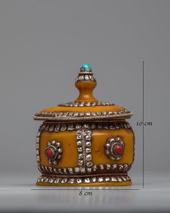 Standing 10cm tall, this versatile pot functions as both an ash holder and a decorative element, making it an ideal addition to any home or sacred space. It inspires introspection and reverence, whether it is utilized in spiritual ceremonies or simply displayed as art. Accept the peace and beauty it gives to your surroundings, as it reflects the essence of Buddhist teachings and serves as a reminder of the interconnection of everything.