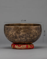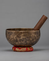 This exquisite singing bowl is a work of art of craftsmanship. The bowl has been hand beaten to perfection and has intricate designs carved on its surface, creating a stunning visual and auditory experience. The design of the bowl is unique and intricate, making it an ideal addition to your meditation or sound healing practice. The bowl's sound is pure and soothing, assisting you in reaching a deep state of relaxation and inner peace. This singing bowl, made with the utmost care and attention to detail, is a must-have for anyone looking to improve their mindfulness practice.