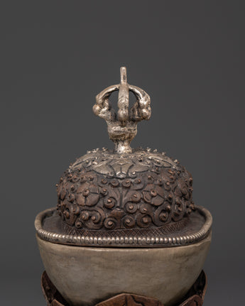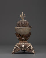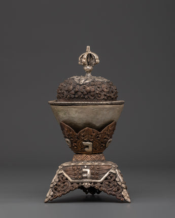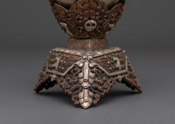 Each chalice has the appeal of oxidized copper and the polished elegance of silver plating, representing purity and protection in Buddhist practice. This lightweight yet elegant set is great for ritual offerings, meditation sessions, and significant Tibetan-inspired decor. Add this Buddhist Ritual Chalice Set to your collection to enjoy a unique blend of cultural heritage and spiritual meaning with each holy sip.