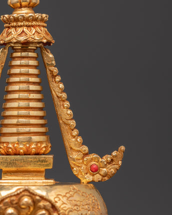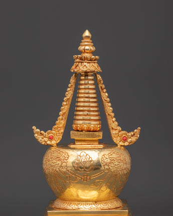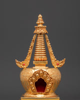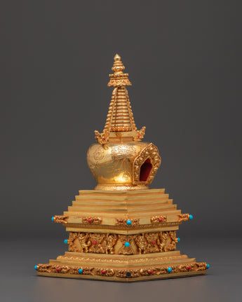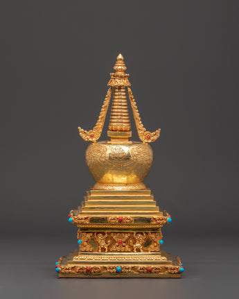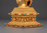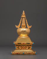 Buddhist Stupa Altar Decoration | Gold Plated & Turquoise Stones Inlaid