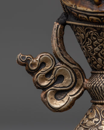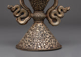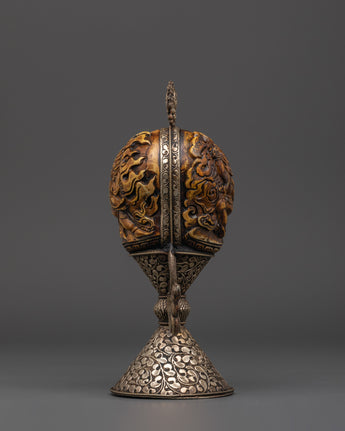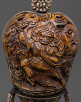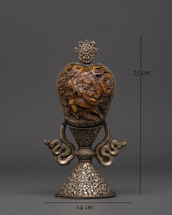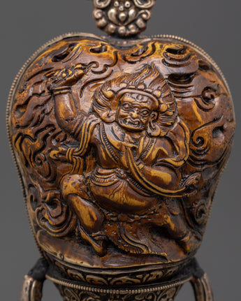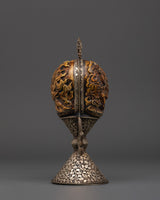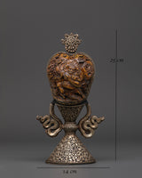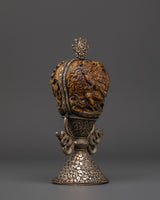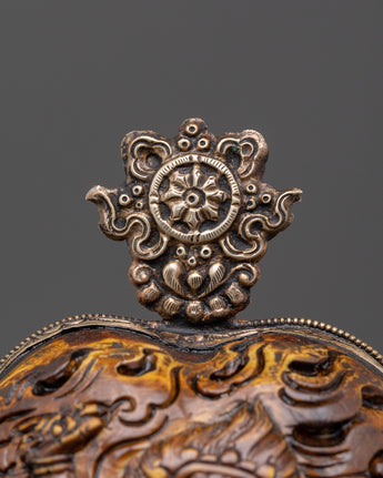 The Buddhist Symbol Art Stamp is a sacred item made of white metal and fiber that can be used for meditation, blessings, and spiritual rituals. It is meticulously created. This superb stamp includes elaborate Buddhist motifs such as deities, mantras, and sacred symbols, all of which represent basic Buddhist teachings such as knowledge, protection, and enlightenment. This stamp, which is ideal for stamping on offerings, prayer materials, or altar objects, aids in the channeling of divine energy and strengthens spiritual connection during rituals and meditative practices. This stamp's exquisite design and high-quality craftsmanship make it an effective complement to any practitioner's altar or spiritual toolset.
