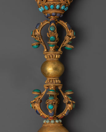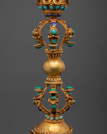 Buddhist Three Sided Phurba | Gold-Plated Ritual Dagger with Crystal and Turquoise
