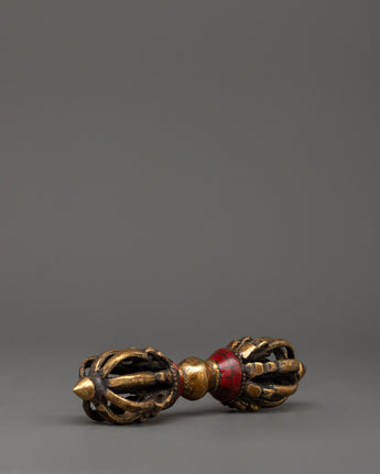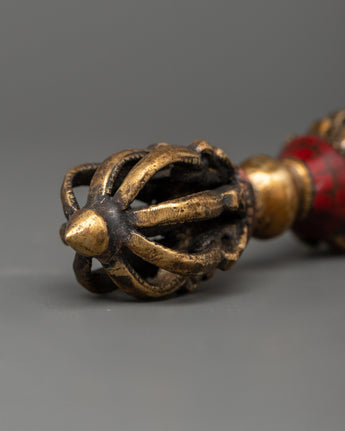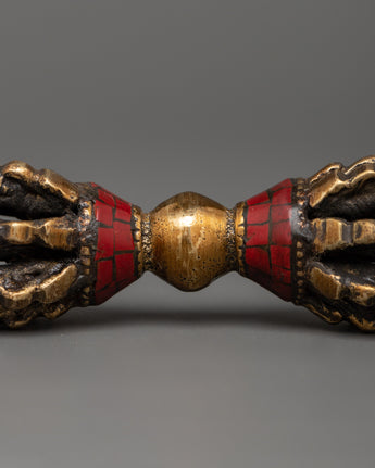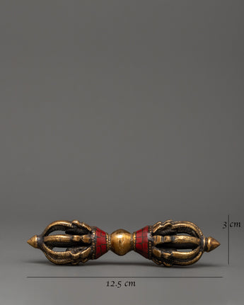 The Buddhist Thunderbolt Vajra is a powerful ceremonial weapon that symbolizes the indestructibility of both wisdom and compassion. This Vajra is crafted from brass and features a stunning coral inlay, making it ideal for spiritual rituals. Its lightning form represents the ability to break free from ignorance and transcend earthly attachments. The coral inlay carries additional spiritual significance, symbolizing protection and life energy.