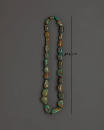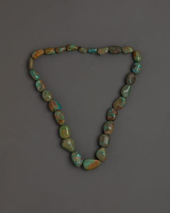 This handcrafted Turquoise Mala's beads are meticulously picked and strung, resulting in a unique and authentic piece for your collection. Semi-precious stones are valued for their capacity to instill positive energy and equilibrium in the wearer. This mala is extremely important in Buddhist rituals, whether used as a meditation tool or a lovely spiritual ornament. The turquoise beads also symbolize personal progress, clarity, and healing. Embrace the power of turquoise and elevate your spiritual journey with this beautiful jewel.