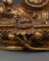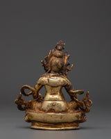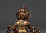 Kubera's Buddhist Sculpture depicts the ruler of riches and the rescuer of the north. Dzambala's benediction and the worth of his practice are worldwide. It helps us to minimize or reduce all calamities and difficulties while increasing all good fortune and pleasure. In Hinduism, Kubera's purpose from the gods was to make believers affluent. This gold-gilded Dzambhala statue is ideal for Vajrayana meditation.