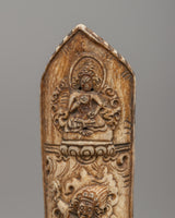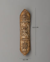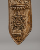 This 19.5cm tall and 4.5cm broad Buffalo Bone Vajrapani Wall Decor is precisely created from ethically obtained buffalo bone, which was chosen for its earthly and spiritual energy properties. This Vajrapani wall art is an effective instrument for spiritual change, representing protection and heavenly power. The material selection also ensures that the item connects with the natural elements, which adds balance and grounding to your spiritual practice.