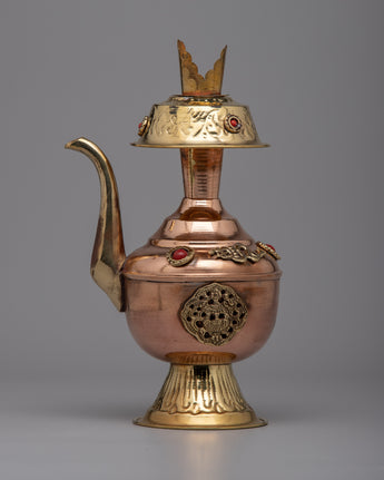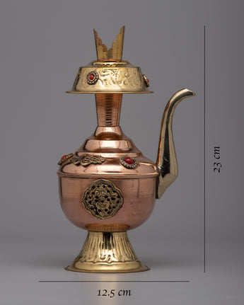 Discover our Sacred Bhumpa Brass Vase, which is skillfully made from a combination of copper and brass using precision machinery. This machine-made masterpiece seamlessly combines Tibetan ritual significance with contemporary craftsmanship.