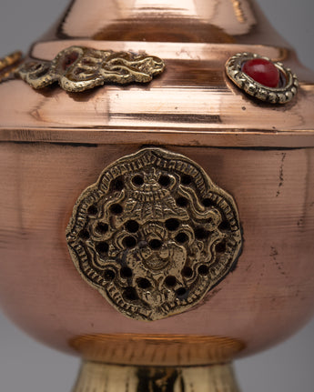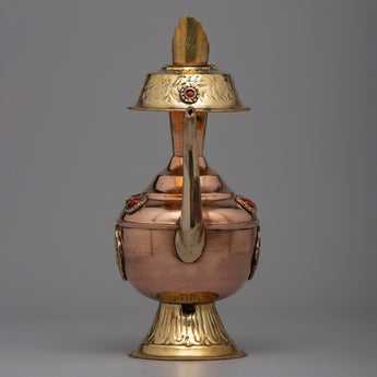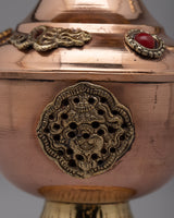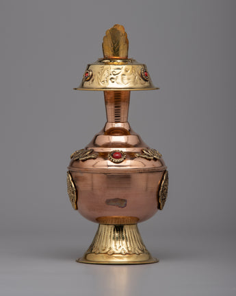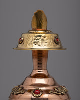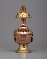 This vase, though not handmade, captures the spiritual essence of Tibetan traditions and is therefore affordable for both practitioners and enthusiasts. The combination of brass and copper lends a feeling of cultural depth, adding beauty and reverence to your home décor or sacred area. Accept the ease of contemporary production while honoring the enduring customs that the Bhumpa represents, establishing a harmonious link between antiquated customs and modern lifestyle.