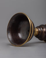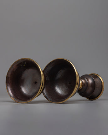 The Tibetan Butter Lamps Set, painstakingly crafted, captures the spirit of traditional Tibetan customs. While the elaborate design contributes to its visual appeal, the rusted copper body gives it a touch of rustic elegance. This set brings a sense of calm, peace, and spiritual illumination into your house, whether it is utilized ceremonially or as a decorative element in your meditation area.