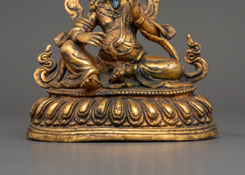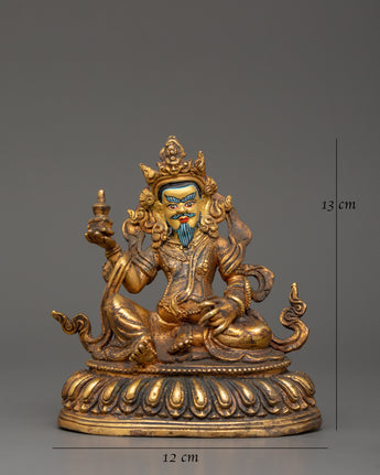 The Chatur Maharaj Set is an excellent example of heavenly monarchy and spiritual strength. This collection of sculptures, measuring 13 cm in height and 12 cm in breadth, showcases copper craftsmanship with a gold-plated finish. Weighing a total of 2.614 kg, with each statue at 0.678 kg, the set combines majesty with delicate design, making it an ideal addition to any spiritual collection or altar. The gold-plated finish symbolizes solemnity, divine favors, and protection.