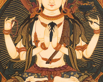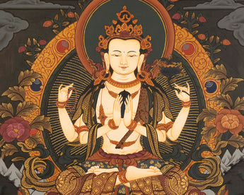Chengrezig Thangka Painting | Religious Tibetan Wall Art