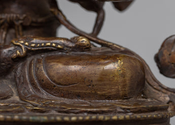 This antique figure, crafted with great attention to detail, personifies the benevolent essence of Chenrezig, another name for Avalokiteshvara. Chenrezig, a representation of mercy and compassion, encourages practitioners to develop empathy and charity for all sentient beings. The Chenrezig Buddha Statue guides people on their path to inner calm and spiritual awakening by acting as a physical representation of Buddhist ideals, whether it is positioned in a shrine or used as a focal point during meditation.