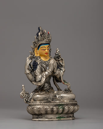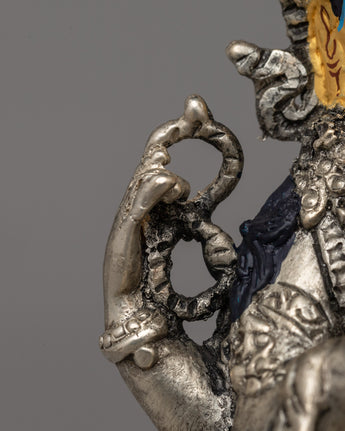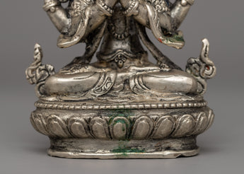 This magnificent statue is made with electro-silver plating which adds to its heavenly aura and beauty. Acrylic paint provides brilliant hues to Chenrezig's face, highlighting the deity's heavenly appearance. The statue, weighing 0.79 kg, is both lightweight and durable, making it great for personal altars, meditation places, or as a thoughtful present for loved ones. Its careful design and spiritual importance make it a timeless treasure, ideal for anybody looking to instill compassion and mindfulness in their surroundings.