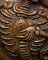 This brass Chitipati wall hanging is thoughtfully crafted to infuse your space with spiritual blessings and protective energy. The intricately detailed figure, from the expressive face to the ornate attire, beautifully captures the essence of Tibetan rituals and sacred practices. Standing as a powerful symbol of transformation and divine guidance, this piece enhances any home, altar, or meditation area with its meaningful presence. Whether you seek to deepen your spiritual environment or appreciate authentic Tibetan craftsmanship, the Chitipati wall decor offers both aesthetic beauty and profound symbolic significance, making it a valuable addition to your space.