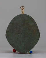 With our Chod Damaru Drum, skillfully handcrafted from red resin, you can experience the rhythmic essence of Tibetan spirituality. This traditional drum has high-quality leather on both sides that has been meticulously prepared to produce its distinctive sound. The white metal body is beautifully adorned with silver plating, adding to the drum's visual appeal and durability.