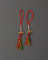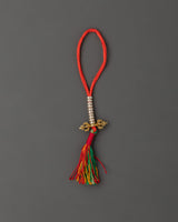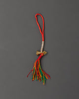 This Tibetan Colorful Chupsel is a stunning and essential addition to any Buddhist ritual or meditation room. This small yet striking piece, measuring 15cm in length and weighing only 0.014kg, is crafted from Five Element Metal and features silver-plated and gold-plated accents. The brilliant red, green, and yellow tassels reflect natural harmony and the incorporation of the five elements (earth, water, fire, air, and space) into one's spiritual practice. This elaborate design is thought to bring harmony and spiritual protection to the practitioner.