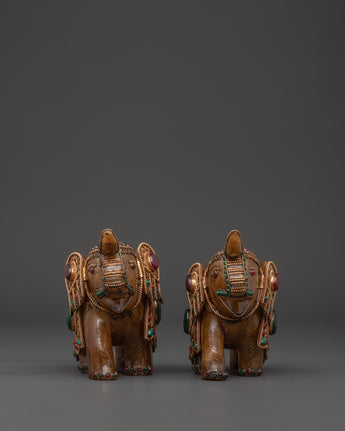 Elevate your living area with our Handcrafted Copper Elephant Set, which is precisely sculpted to add spiritual grace and colorful beauty to your house. These magnificent elephant sculptures are embellished with brilliant crystals, coral, and turquoise inlays and set on a copper base with silver-plated accents. Each elephant weighs 1.232kg and measures 13cm in height and 16cm in breadth, bringing the total weight to 2.464kg. These elephants, whether displayed in a living room, meditation space, or as part of a home shrine, are a sign of strength, wisdom, and good fortune that is respected in many cultures throughout the world.