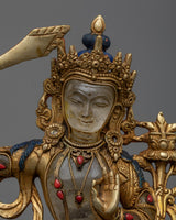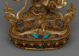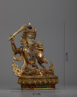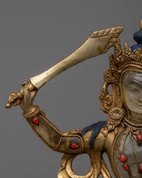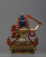 Introducing the Manjushri Sadhana Statue, a powerful representation of enlightenment and spiritual practice. Handcrafted from exquisite crystal stone, this statue exudes purity and clarity, beckoning deep reflection and internal transformation. The parts plated with radiant 24k gold are meticulously crafted from copper, ensuring both durability and elegance.