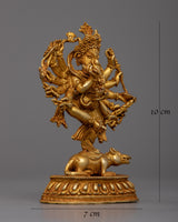 Introducing our Dancing Ganesh Statue, a stunning representation of Lord Ganesh in a joyous and dynamic attitude. This statue is produced with precision using a machine and has a copper body with excellent 24k gold plating, which adds to its elegance and spiritual value.
