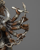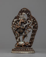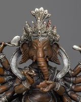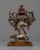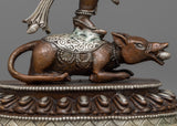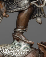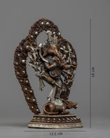 This Ganesha Statue exemplifies meticulous craftsmanship. The oxidized copper body reflects traditional allure, while the silver plating adds a luxurious touch. Standing at an impressive height of 18cm, it depicts Lord Ganesha in a unique dancing pose that exudes grace and spirituality.