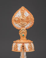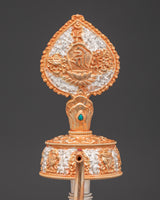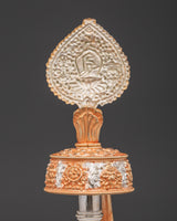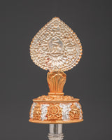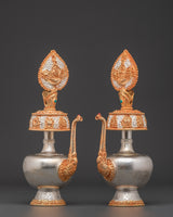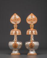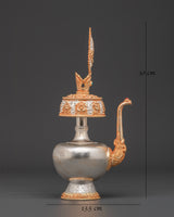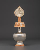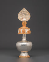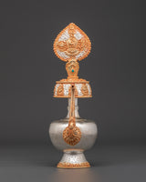 The Decorative Bhumba Altar Set will add a sense of sacred elegance to your spiritual sanctuary. This finely created set, measuring 30 cm in height and 13.5 cm in width, is composed of copper and plated with a striking blend of gold and silver. This altar set, weighing 1.09 kg, lends spiritual significance to your Buddhist altar or meditation space while also being visually appealing. Its excellent craftsmanship and rich cultural symbolism elevate any sacred area, making it ideal for rituals, prayers, and offerings.