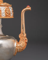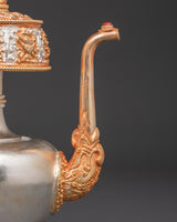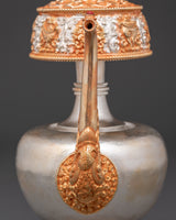 Water is essential in both Hindu and Buddhist rites, and it is always present on the altar, either in a pricey pot or in another container. Bhumba is a pot shaped like a flat jar, featuring a pipe to draw out the water, and is elaborately embellished with valuable stones and metal.