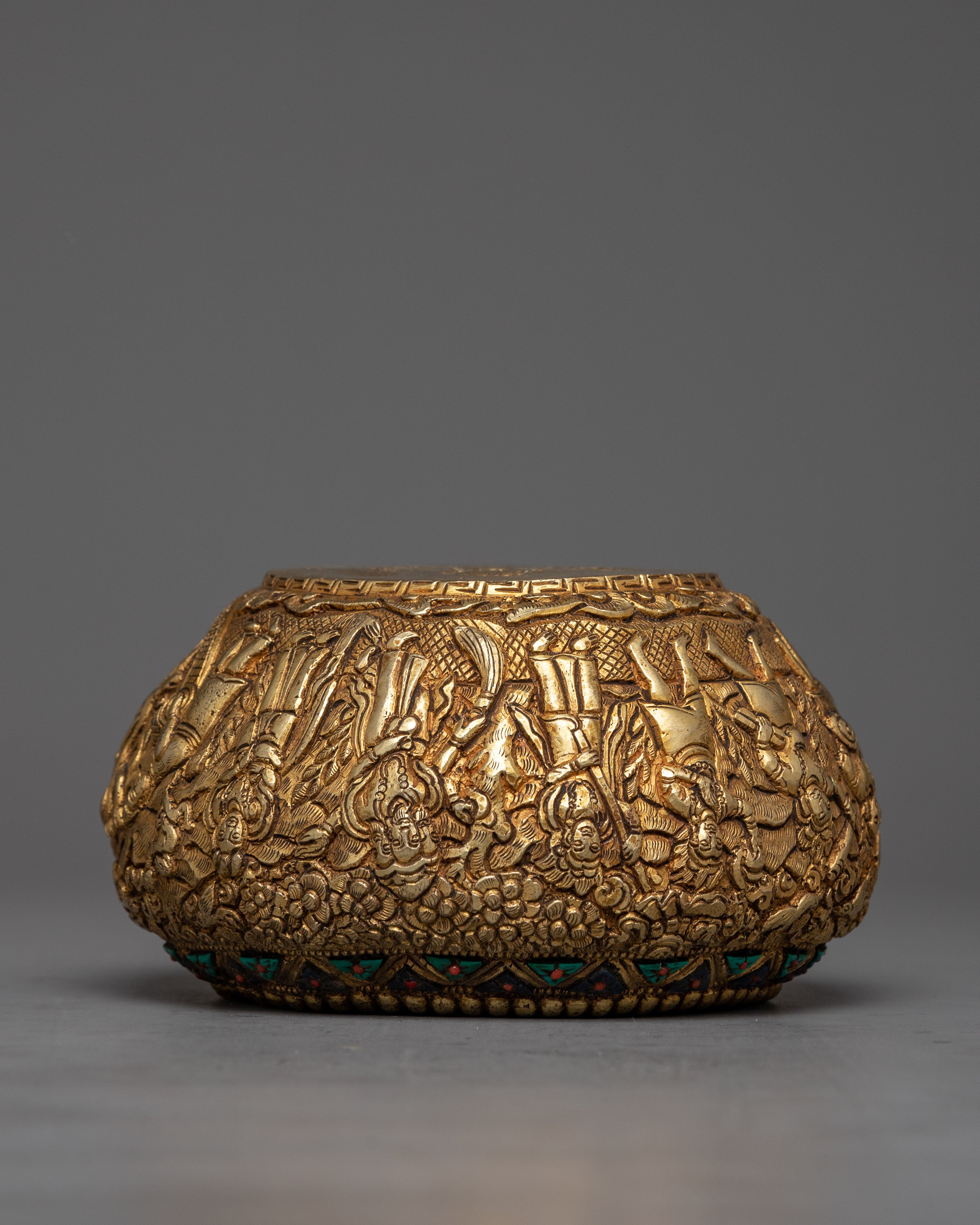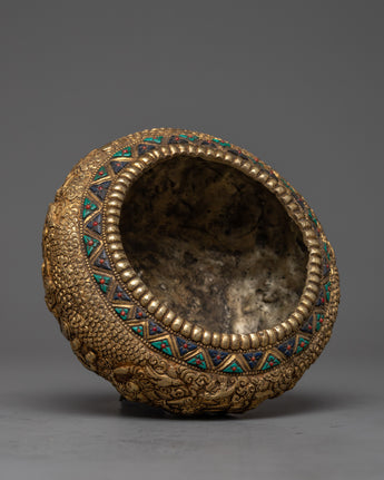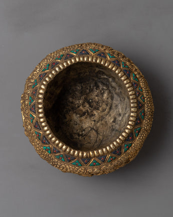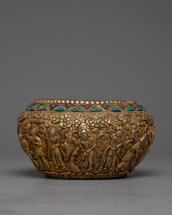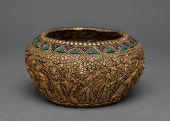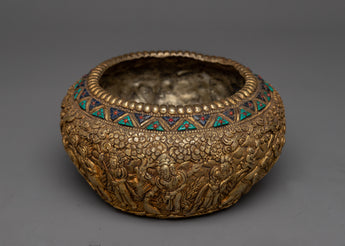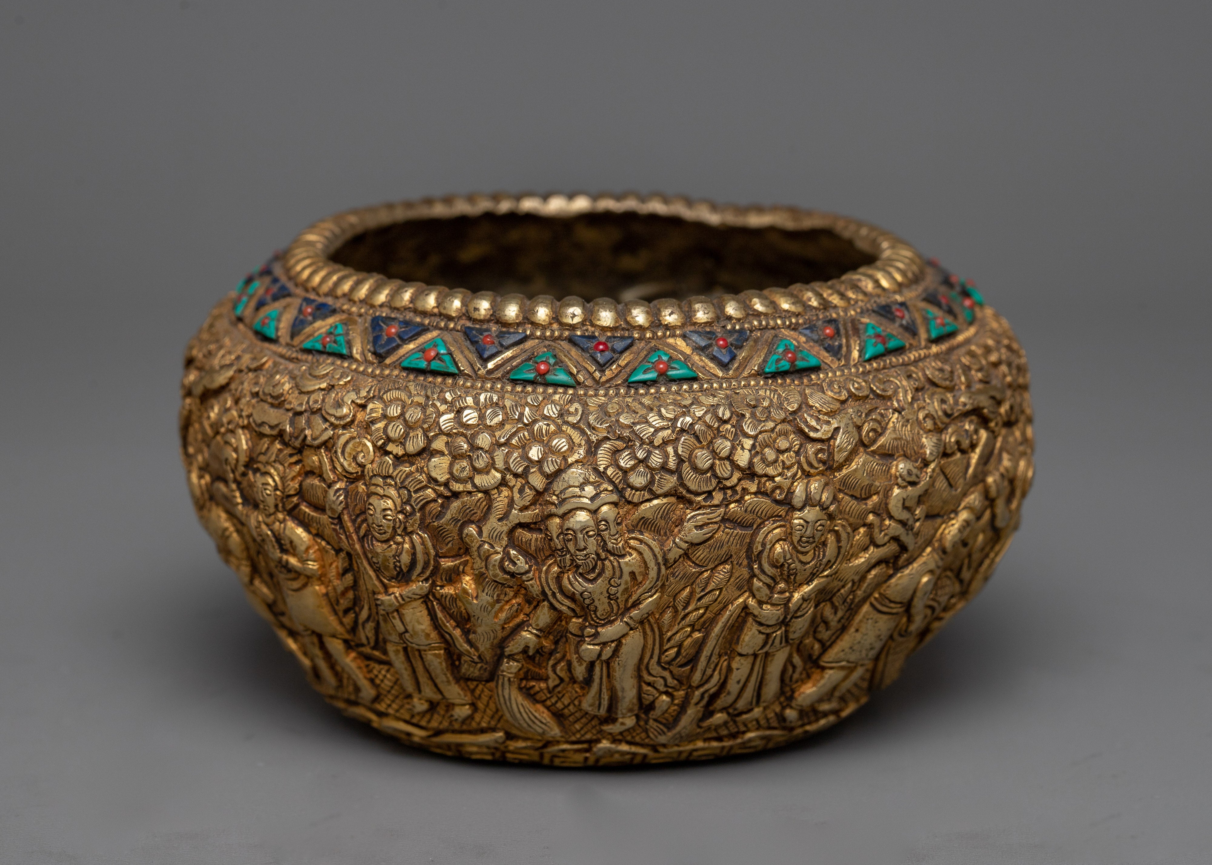 Because of its purifying properties and symbolic meaning of devotion, this pot is highly esteemed in rituals. Its elaborate decoration and spiritual significance make it a highly valued asset for both practitioners and collectors, adding a touch of sacred beauty to any area.