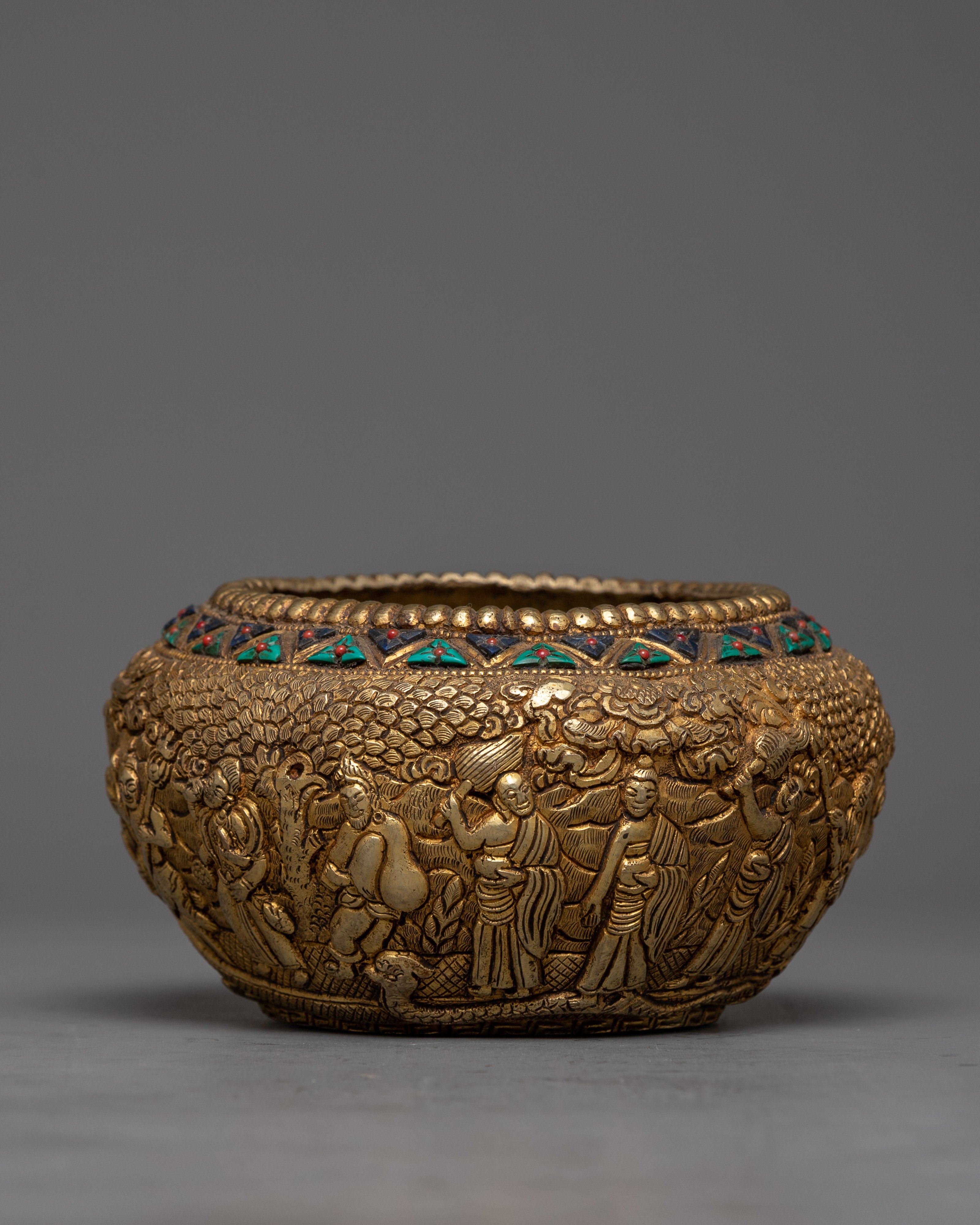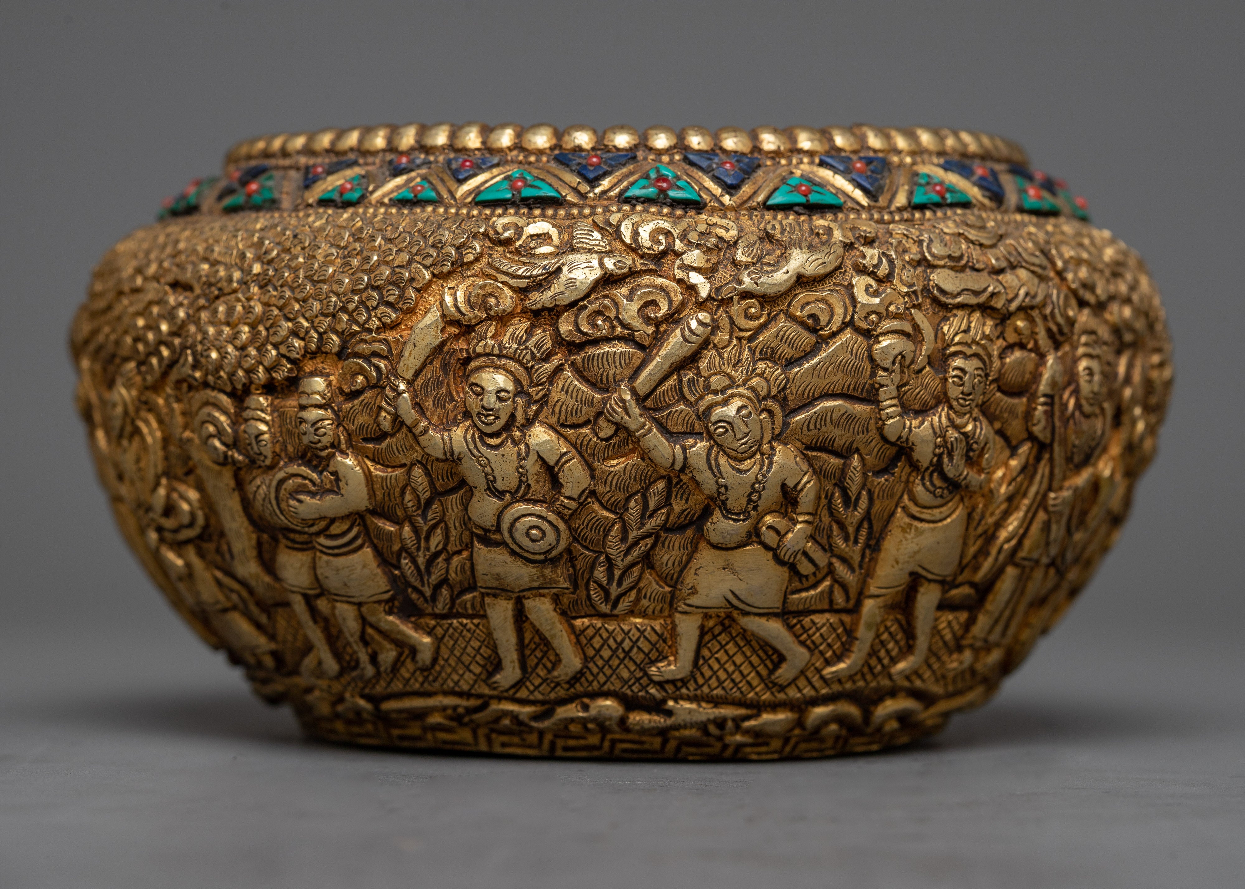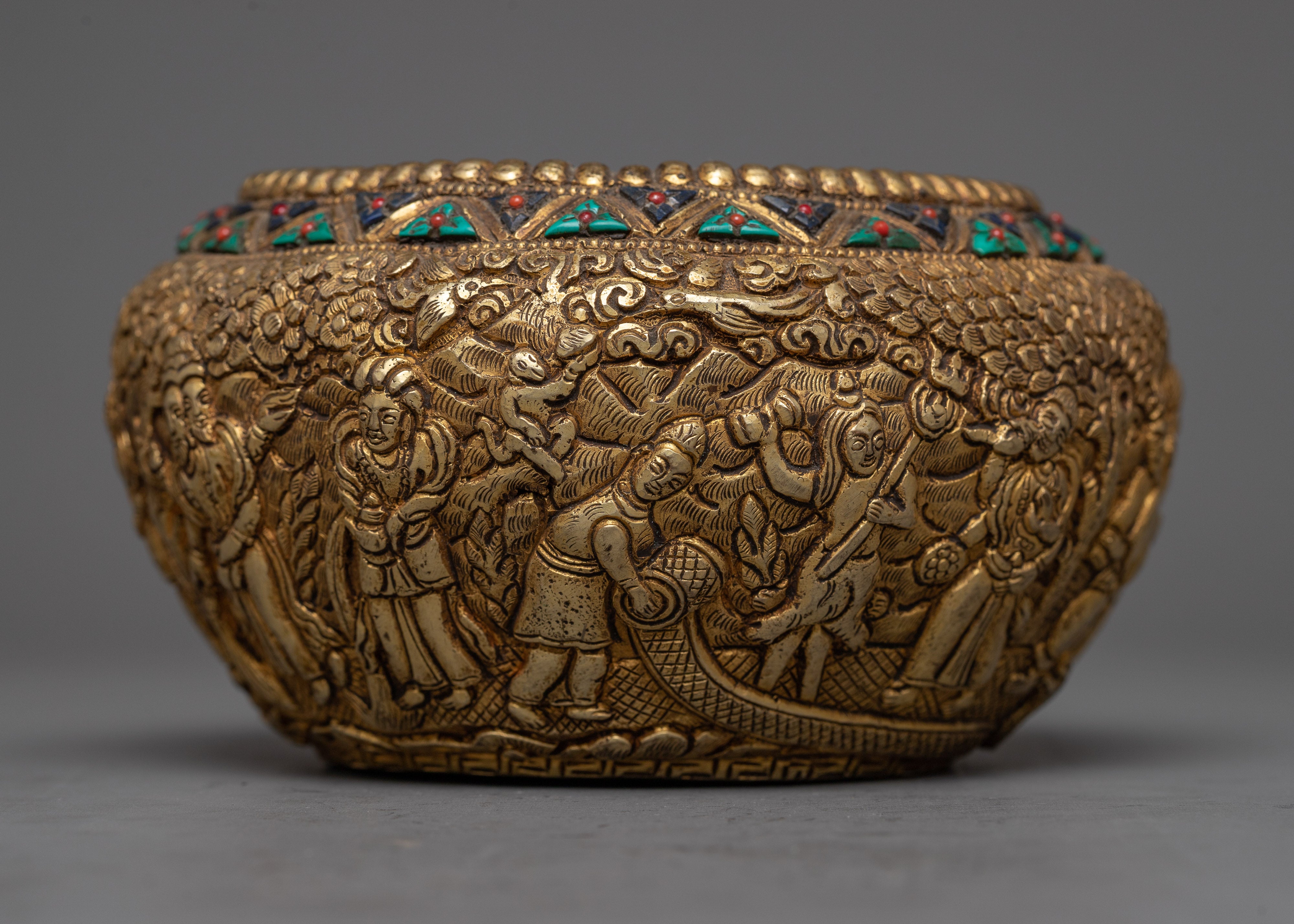 Because of its purifying properties and symbolic meaning of devotion, this pot is highly esteemed in rituals. Its elaborate decoration and spiritual significance make it a highly valued asset for both practitioners and collectors, adding a touch of sacred beauty to any area.