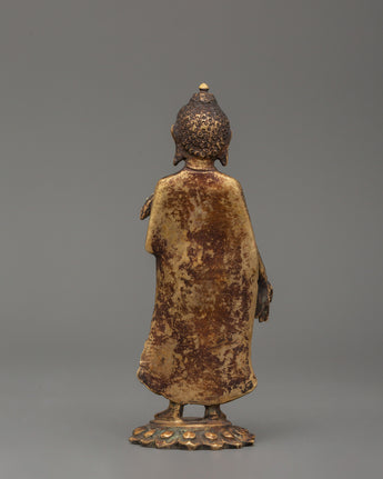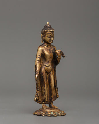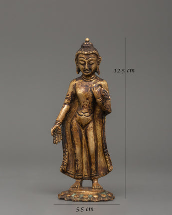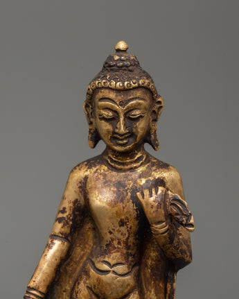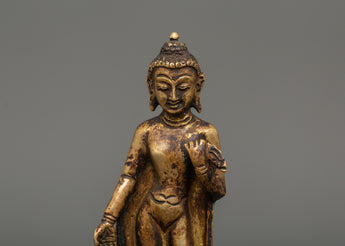 Dipankara Buddha statue is a 12.5cm copper sculpture that represents knowledge, spiritual awakening, and enduring Buddhist teachings. Dipankara Buddha, one of the previous Buddhas, is renowned for foretelling Gautama Buddha's enlightenment, making this precious statue a sign of divine foresight and spiritual advancement. This intricately carved figurine is ideal for meditation areas, Buddhist altars, and personal shrines.