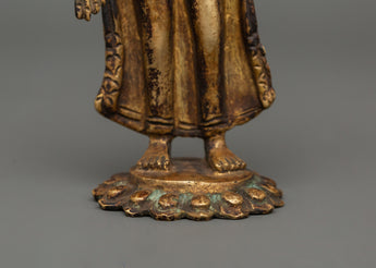This beautiful Buddha statue, made from high-quality copper, exemplifies traditional Tibetan workmanship with finely carved characteristics. The exquisite copper finish heightens its spiritual essence, making it an essential complement to a Dharma practice, altar worship, or collector's Buddhist item. Whether employed for meditation, religious ceremonies, or as a thoughtful spiritual gift, this Dipankara Buddha idol represents enlightenment, inner tranquility, and the eternal path of wisdom.