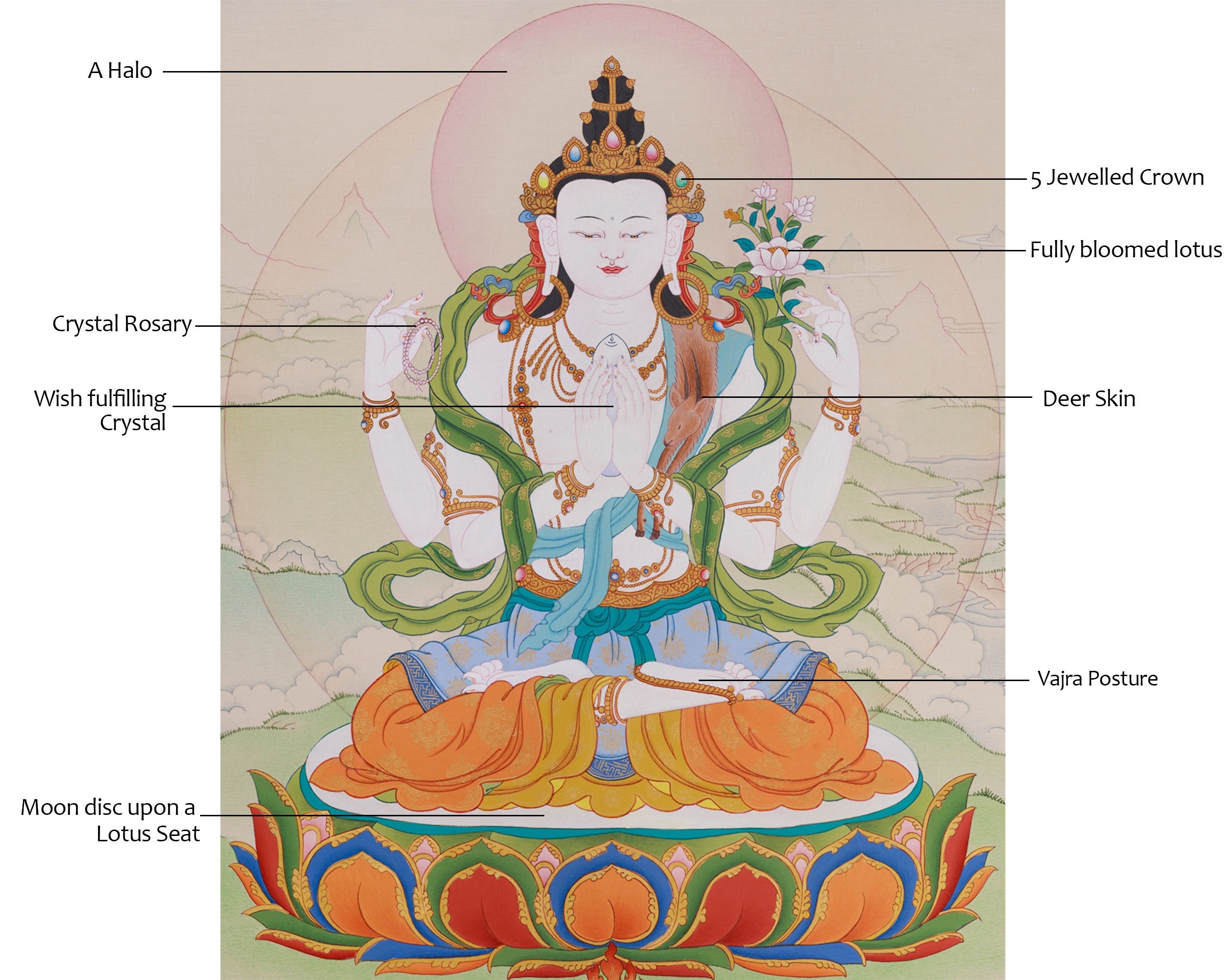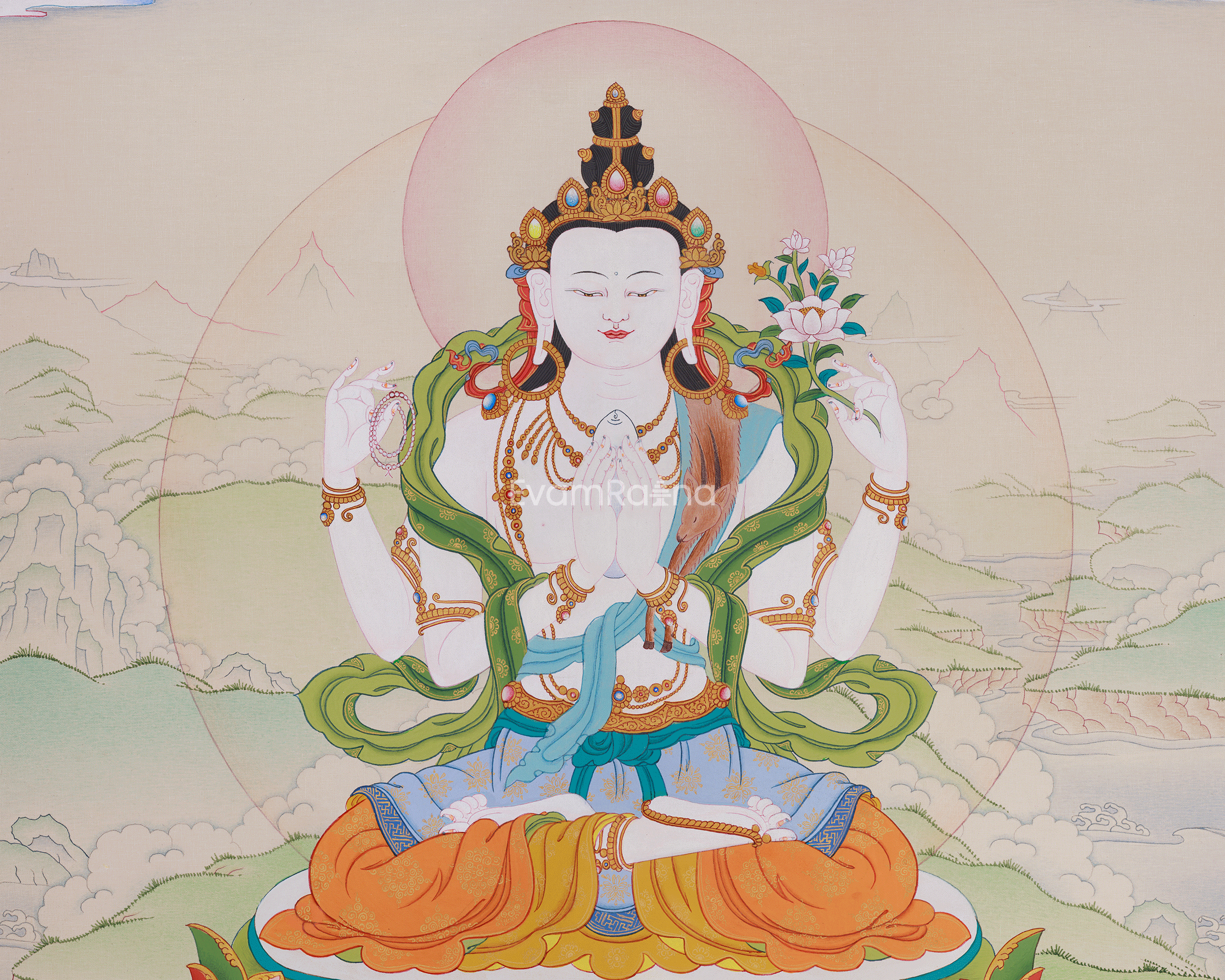 Divine Bodhisattva Chenrezig Painting | Symbol of Mercy and Protection