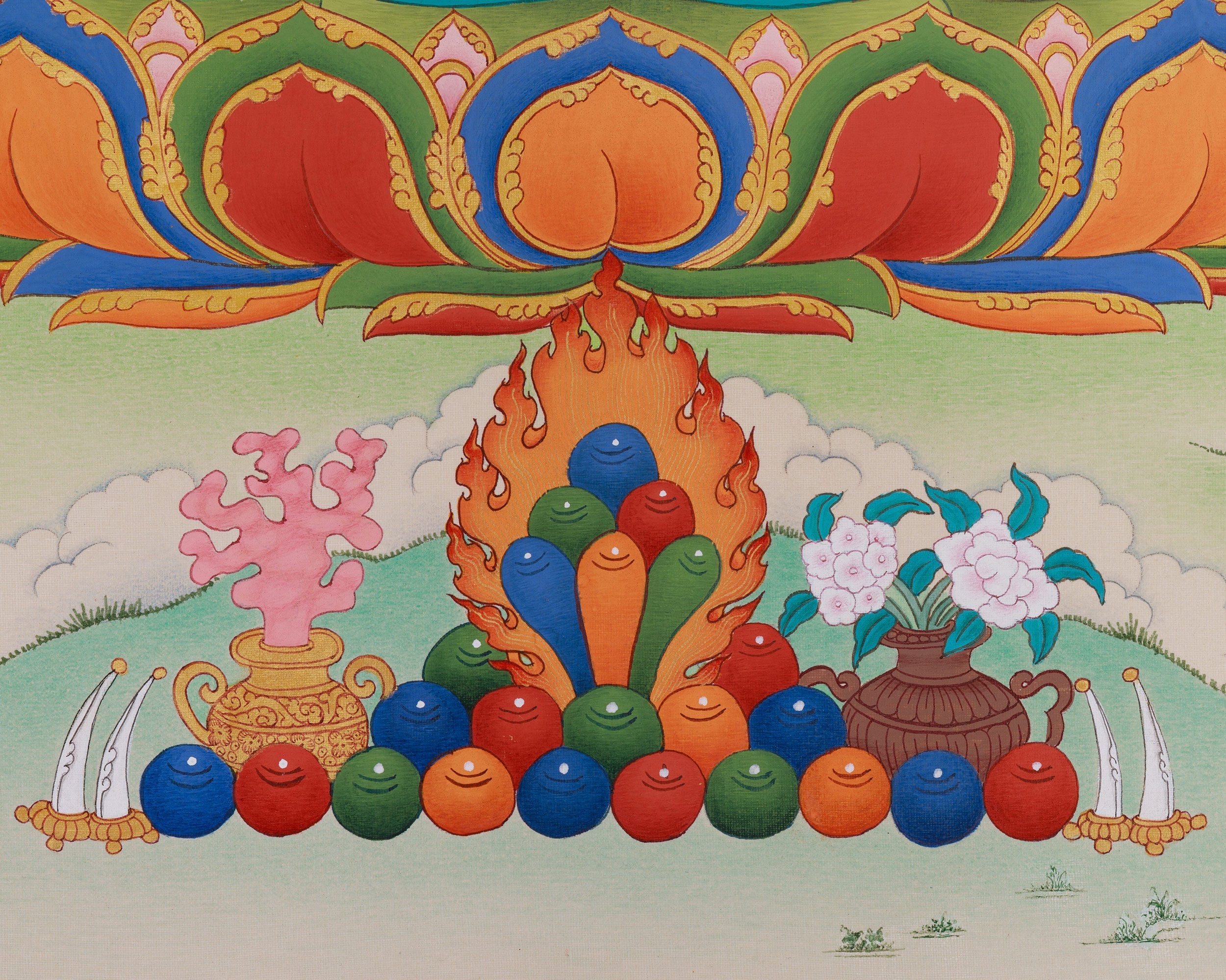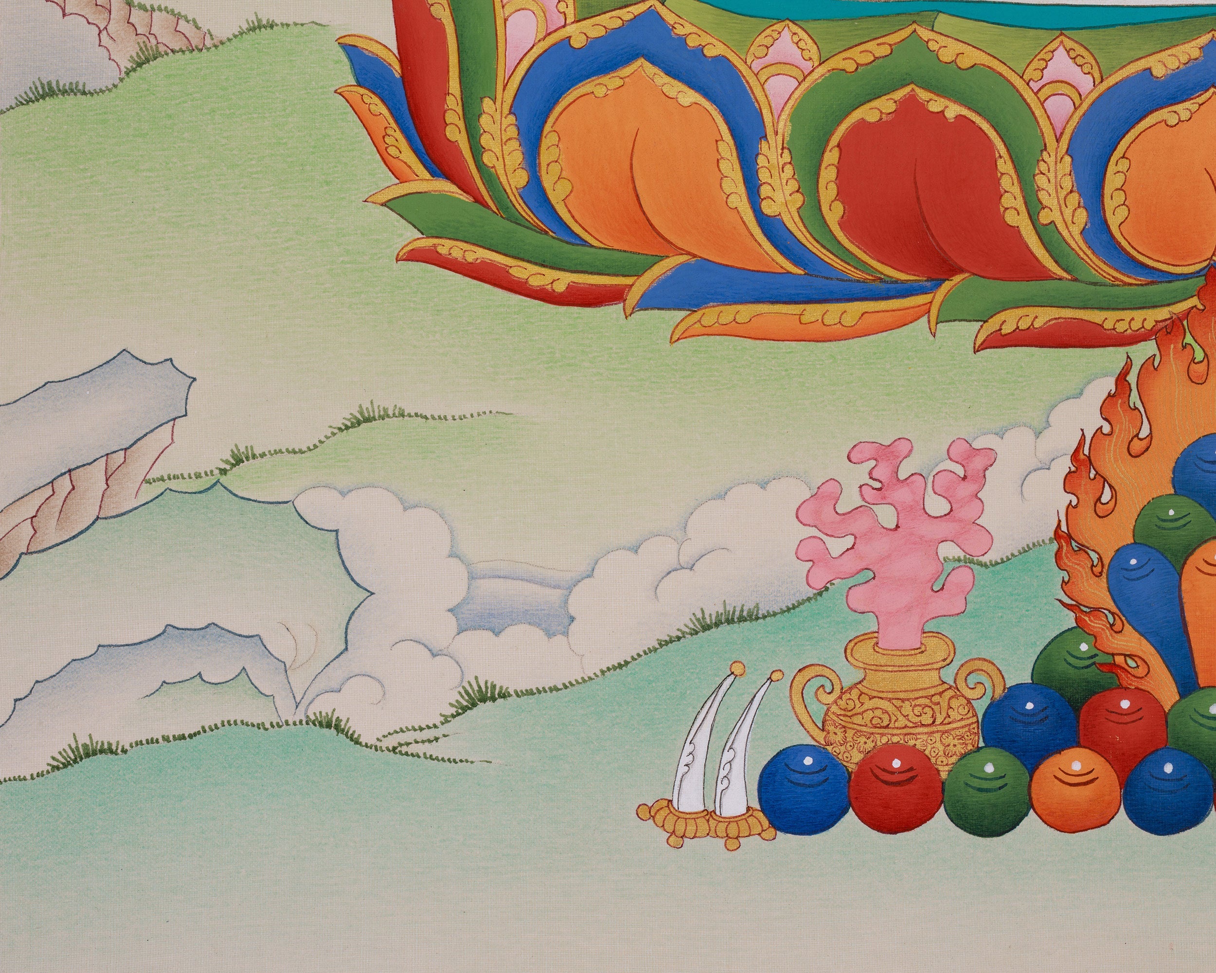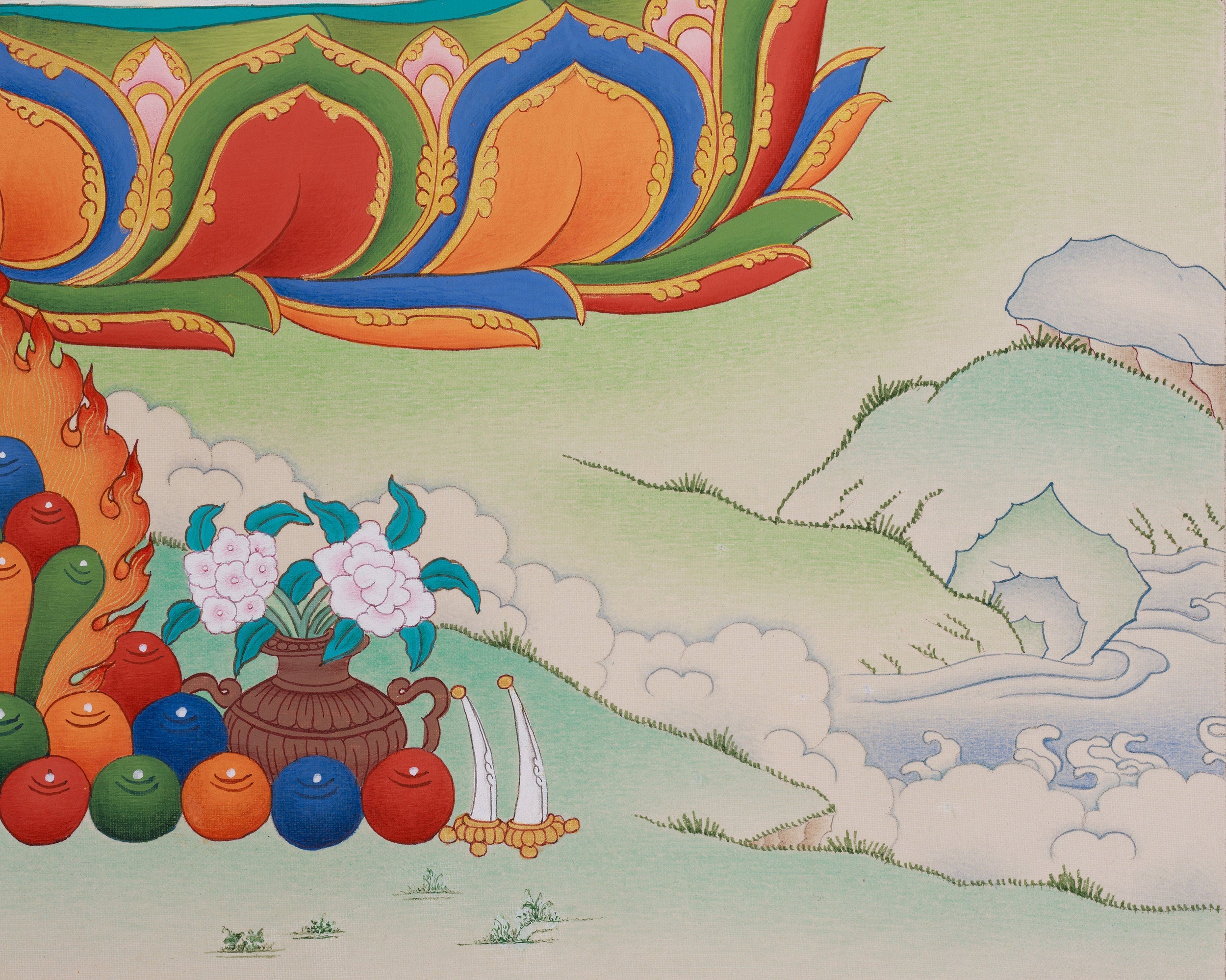 HAND-PAINTED WITH NATURAL LHASA STONE COLOR AND GENUINE 24K GOLD IN TRADITIONAL KARMA GADRI STYLE