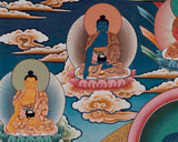 The "Divine Enlightenment: Shakyamuni Buddha, Five Buddhas, and Disciples Thangka" is a spiritual masterpiece that transforms any space into a sanctuary of peace, promoting wisdom, compassion, and enlightenment.