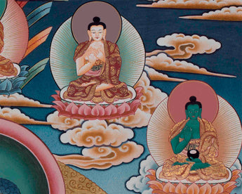 It goes without saying that every detail of a painting has a symbolic meaning. Regardless of your religious affiliation, a thangka can help you on your path to enlightenment, whether you practice Buddhism or have other religious convictions. Thangkas are paintings that depict deities with various iconographic elements and symbolism that encourage meditation on the teachings of the god they depict. Any thangka is intended to aid in the removal of the film of ignorance, which is a significant barrier to the road to enlightenment. The Thangka is revered as a holy item. They promote positivity, spread Buddhism's teachings, bring about peace, harmony, and oneness, and dispel any negative energy that may be there.