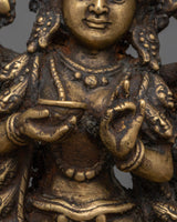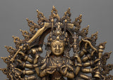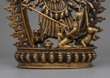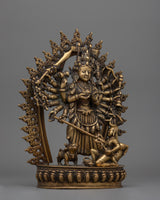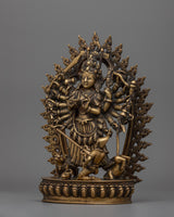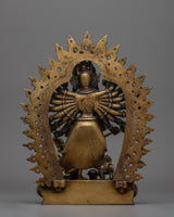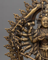 Durga is extensively celebrated, particularly during the Navaratri festival, when she is worshipped for nine nights to commemorate her victory over the buffalo monster Mahishasura. Her qualities of resilience, boldness, and divine justice make this monument a significant symbol of empowerment. This artwork, with its rich features and Bronze craftsmanship, would look great in any spiritual setting, altar, or holy art collection.