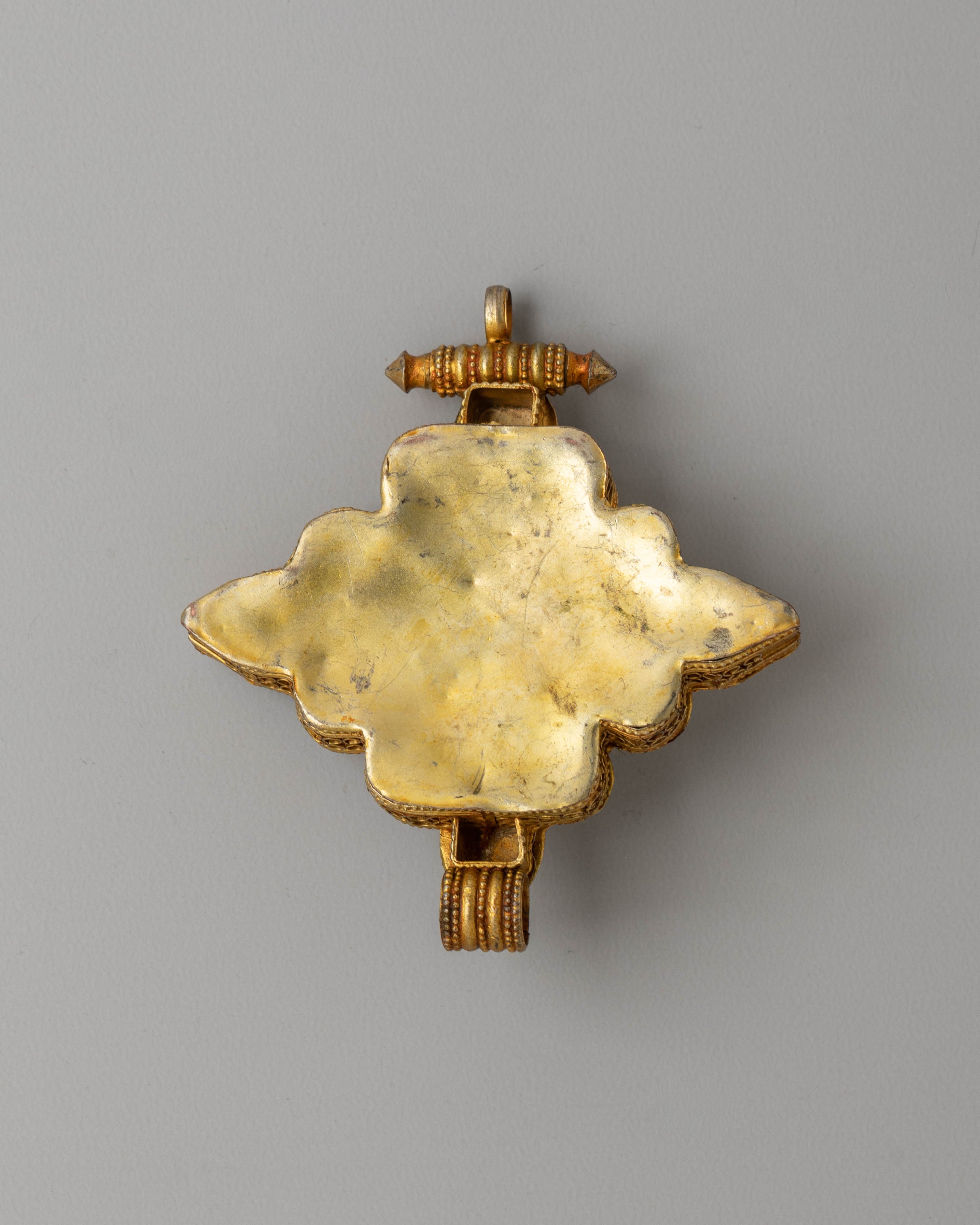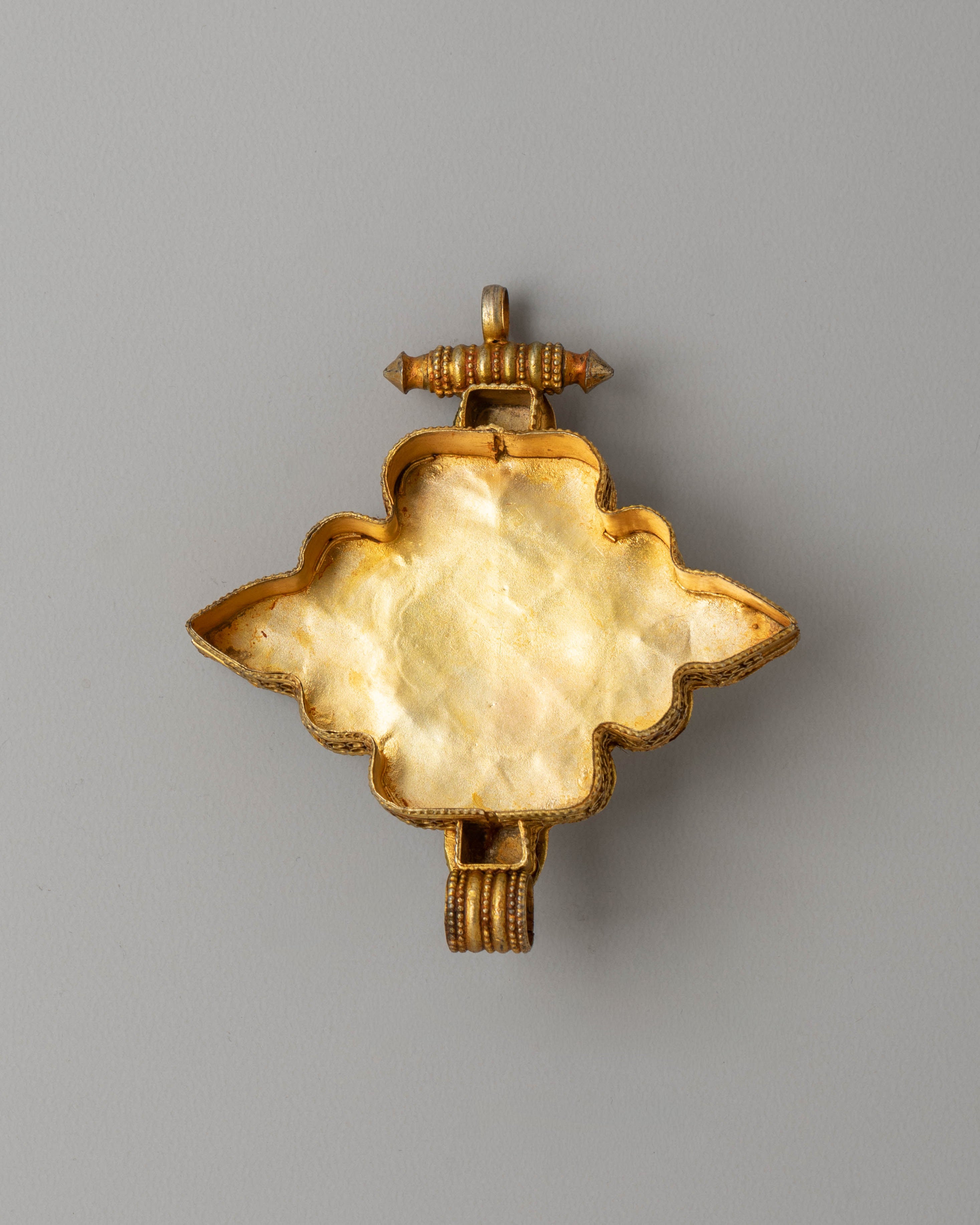 Handmade Electro Gold Plated Ghau Locket | Copper Locket with Gemstone Accents