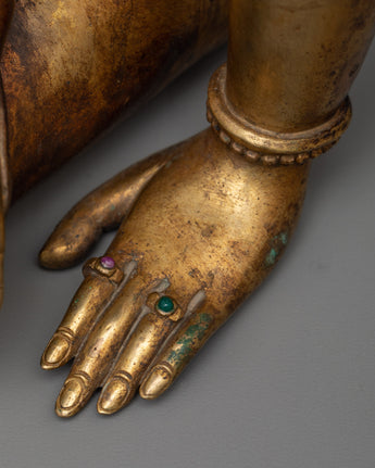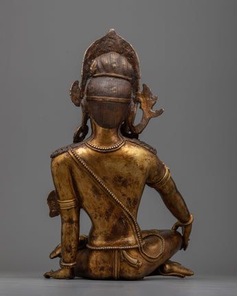 Discover the mystical beauty of our Enigmatic Indra Sculpture, which depicts Indra, the ultimate leader of the Devas and Lord of the Heavens. This sculpture is meticulously crafted with 24k gold, engulfing the copper body in a celestial brightness, representing supreme authority and divine might, and finely led inside the process of making antiques to make the statue even more precious and history holding.