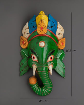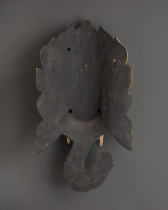 This exquisite Ethnic Ganesh Wall Hanging will impart divine protection and spiritual vitality to your residence. This beautiful wall sculpture is meticulously hand-carved from wood and finished with vivid, bright acrylic colors. The dimensions are 45.5 cm in height and 25 cm in width, with a weight of 0.57 kg. The elaborate artistry highlights Lord Ganesha's tranquil visage, symbolizing wisdom, success, and the removal of obstacles, rendering it a perfect addition for residences, meditation spaces, altars, or yoga studios.