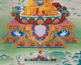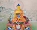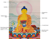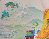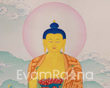 An extra-large Shakyamuni Thangka, crafted using natural pigments, embodies a profound expression of Buddhist artistry and spirituality. Renowned for its rich tradition of thangka painting, this masterpiece reflects the essence of the Karma Gadri artistic style, known for its intricate details and vibrant colors.